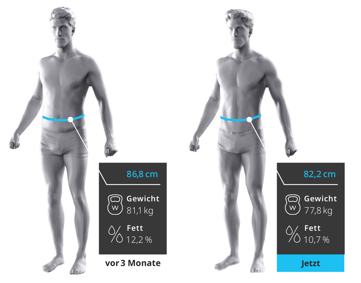- 4.Sie wiederholen regelmäßig die Köperanalyse und sehen die Fortschritte mit Ihren eigenen Augen